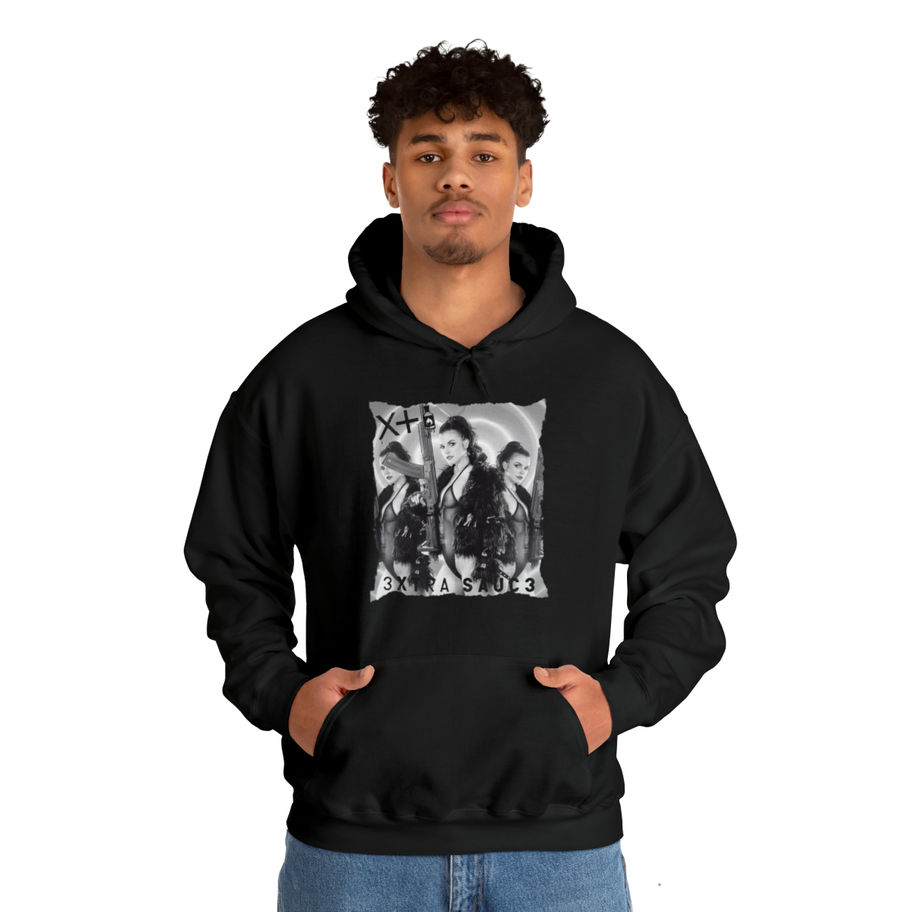 This unisex heavy blend hooded sweatshirt is relaxation itself. Made with a thick blend of cotton and polyester, it feels plush, soft and warm, a perfect choice for any cold day. In the front, the spacious kangaroo pocket adds daily practicality while the hood's drawstring is the same color as the base sweater for extra style points.